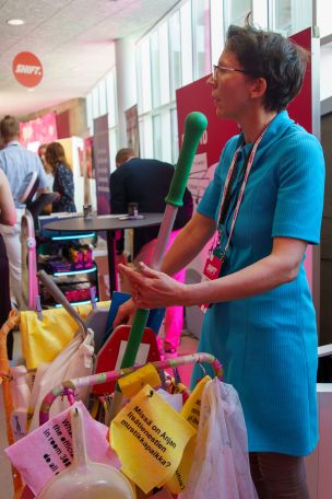 Taiteilijan sanat: Performanssissa siivooja kulkee värikkääksi somistetun siivouskärryn kanssa sovitussa tilassa ja siivoaa. Kärry on täynnä värikkäitä liinoja, moppeja, kirkasvärisiä pulloja, saippukuplia. Siivooja kysyy vastaantulevilta, onko heillä jotain ajatuksia, mistä haluaisivat päästä eroon, ja sen saa kirjoittaa siivousliinalle ja sen saa heittää siivouskärryn roskapussiin. Performanssin lopputuloksena kärry on täynnä näitä muistiinpanoliinoja, ja osallistujien mieli toivottavasti kevyempi. Performanssi sopii toteutettavaksi esim. osana työyhteisön kehittämispäivää tai monenlaisten tapahtumien yhteyteen.